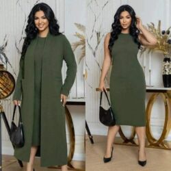 - Set od 2 dela: bezrukavna midi haljina i dugi kardigan