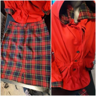 - Suknja karirana, ravnog kroja sa malim šlicem pozadi, kopčanje napred na dugme i rajsferšlus, sa postavom.