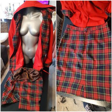 - Boja: intenzivno crvena sa kariranim detaljima (crveno‑crno‑žuti tartan)