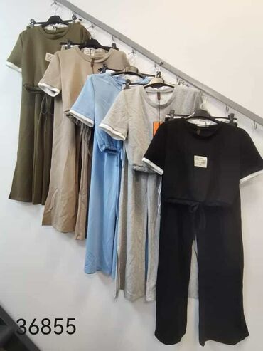 DžepoviŽenski komplet koji se sastoji od majice kratkih rukava i pantalona širokih nogavica, idealan za opuštene prilike. Majica ima kratke rukave sa kontrastnim rubom i rebrasti okrugli izrez, dok pantalone širokih nogavica nude udobnost i slobodu kretanja. Oko struka se nalazi bela traka sa učkurom za podešavanje, pružajući dodatnu udobnost i prilagodljivost. Komplet je dostupan u više boja, što ga čini pogodnim za svakodnevno nošenje ili sportske aktivnosti.