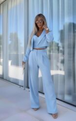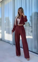 Klasična silueta koja vizuelno izdužuje figuru, pogodna za poslovne prilike, svečanosti i večernje izlaske. Materijal pada glatko i pruža uredan, sofisticiran izgled tokom celog dana. Sako i pantalone se lako kombinuju i sa drugim komadima (top, košulja, bodi).