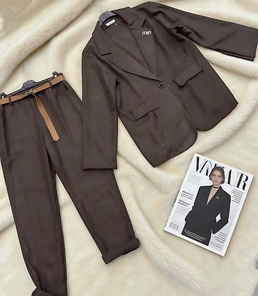 - Detalji: diskretna metalna broš-iglica “mhn” na reveru; sako blago strukiran za urednu siluetu; pantalone sa elastičnim pojasom i bočnim džepovima za udobnost.