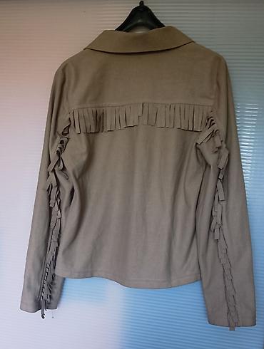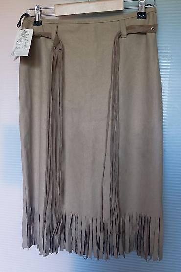 Novi komplet – suknja i gornji deo u bež/tan braon nijansi, sa efektom brušene kože i ukrasnim resama u vestern stilu.