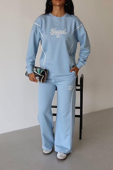 Damski komplet trenerke – gornji deo i donji deo u istom tonu. - Model: dvodelni set sa dugim rukavima i ravnim nogavicama, elastičnim strukom i dekorativnom satenskom trakom/učkurom za podešavanj...