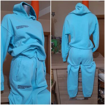 - Donji deo: pantalone sa dubokim strukom, učkur za podešavanje, elastična ranfla na nogavicama, bočni džepovi, diskretan print na levoj nogavici