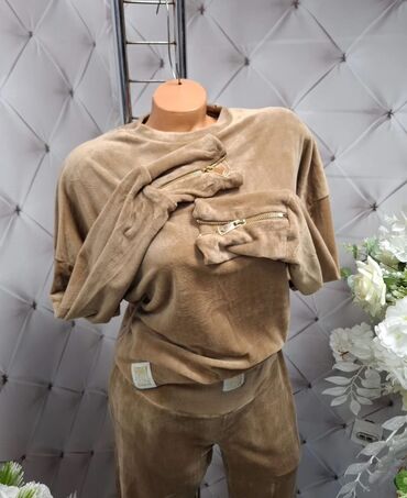 💫Ženski komplet trenerke (baršunastog materijala) u toploj bež/karamel boji.