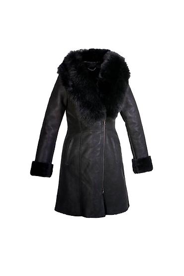 Ženska zimska jakna/kaput sa krznom – crna - Elegantna dužina do