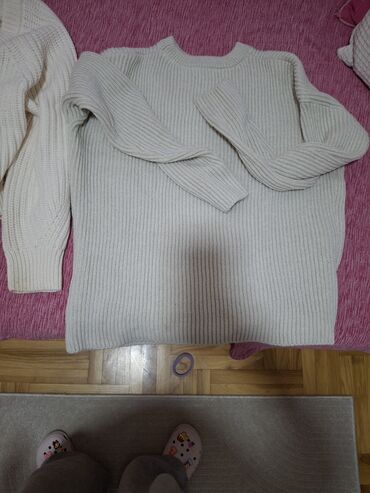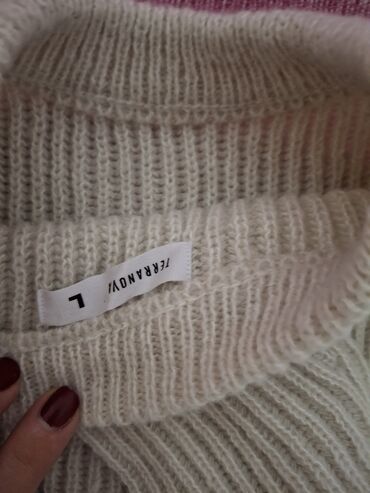- Džemper: TERANOVA, veličina L. Klasičan model sa okruglim izrezom, izraženim rebrastim pletivom i dugim rukavima. Mekana, topla pređa u svetlo-bež/krem nijansi, ravnog kroja koji lepo pada.
