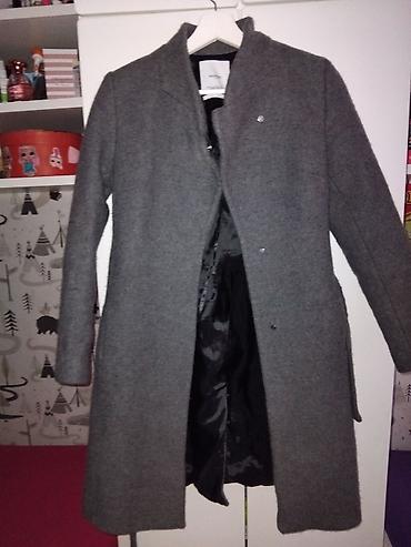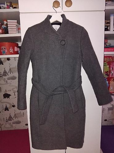 Elegantna, minimalistička silueta koja lepo oblikuje struk zahvaljujući pojasu; topla vuna i klasična tamnosiva nijansa čine ga pogodnim za svakodnevno i poslovno nošenje.Mislim da vise odgovara za XXS,ili devojčicu od 12-13god.