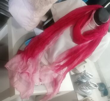 Lagani ženski šal/pašmina sa ombre efektom u nijansama od svetloroze do jarko roze. Poluprovidan, talasasto teksturiran materijal prijatnog pada. Dovoljne dužine za višestruko obmotavanje oko vrata...