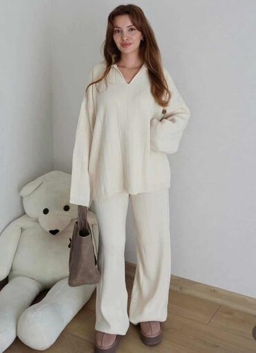 One size💫Ženski pleteni komplet – džemper i široke pantalone