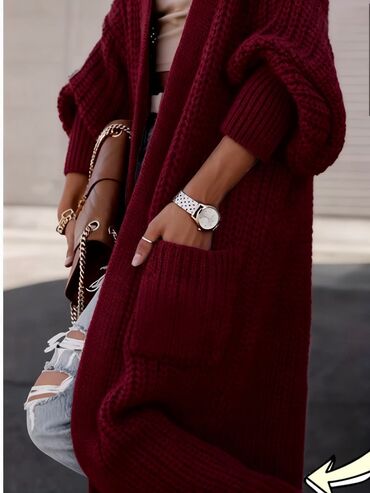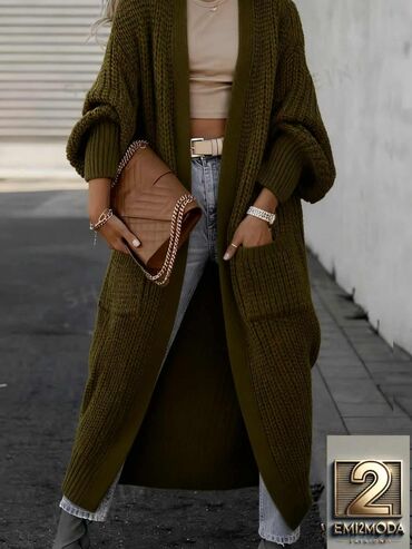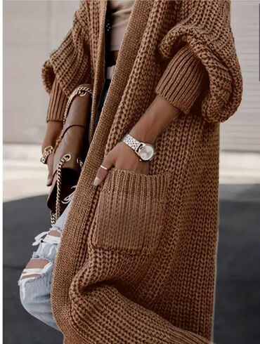 Dugački pleteni kardigan bez kopčanja - Model: oversize kroj sa spuštenim ramenima i širim rukavima suženim na manžetnama - Dužina: ispod kolena - Materijal: debelo, mekano pletivo sa izraženom te...