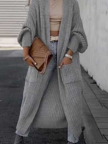 Ženski dugi džemper kardigan. HVeličina M/l/Xl, sive boje, jako topao, može kao džemper / jakna