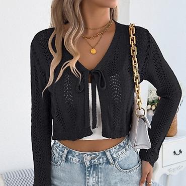 Ženski pleteni kardigan sa vezivanjem napred - Krojen kao kratak
