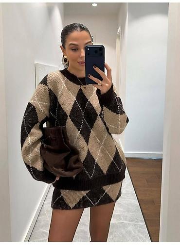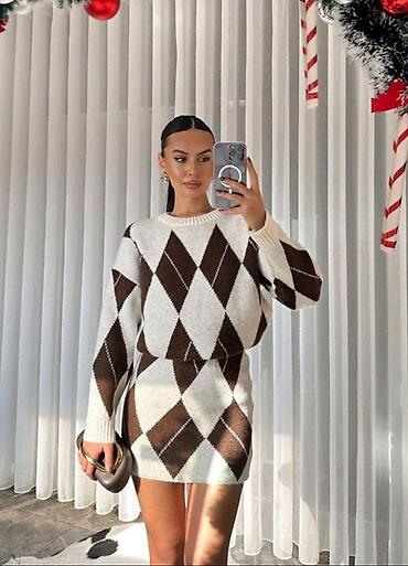 Komplet džemper + mini suknja sa argyle (romb) šarom
