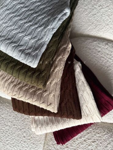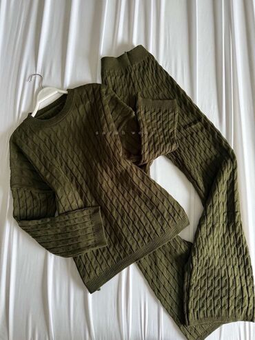 - Pletenje: reljefni kosi “cable” uzorak po celoj površini; rebrasti završeci na manžetnama, dnu džempera i nogavicama