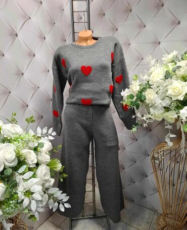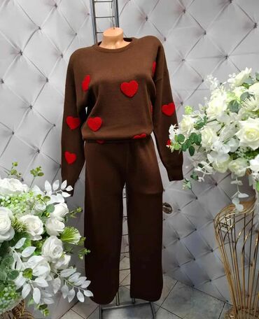 Dvodijelni ženski pleteni komplet – duks i pantalone širokih nogavica. - Materijal: mekani pleteni triko, elastičan i udoban za celodnevno nošenje. - Gornji deo: ravni okrugli izrez, spuštena rame...
