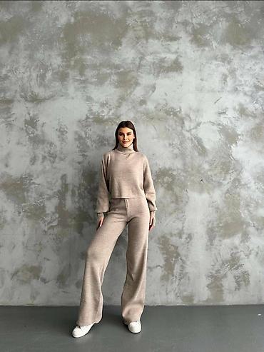 Ženski komplet – pleteni duks i široke pantalone - Dvodijelni set