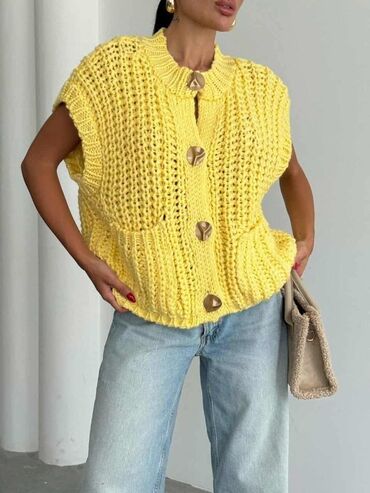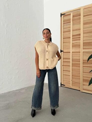 Plišani prsluk bez rukava, krem/bež bojeručni rad univerzalni - Materijal: meko, „dlakavo” pletivo sa sjajnim vlaknima, toplo i prijatno na dodir - Kroj: bez kragne, V-izrez; blago širi donji deo ...