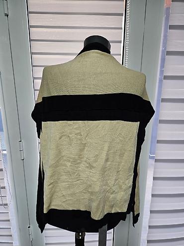 Pletena zelena pelerina - Model: pelerina/kapa sa dugmadim po celoj dužini - Boja: nijanse zelene sa belim cik-cak detaljem pri dnu - Materijal: mekana, bukle tekstura sa toplim, vunastim osećajem...