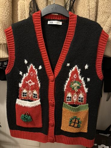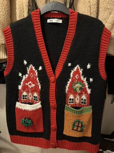 Zara(novi)pleteni prsluk bez rukava sa prazničnim motivima.