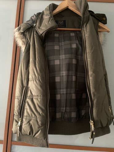 Ženska prošivena prsluk-dukserica sa kapuljačom - Dužina do sredine butine, lagano strukiran kroj - Prednje kopčanje rajsferšlusom po celoj dužini - Topla, lagano punjena tkanina; dijagonalno proš...