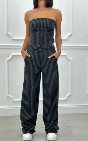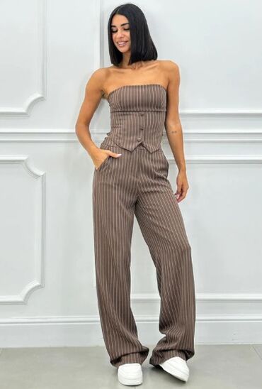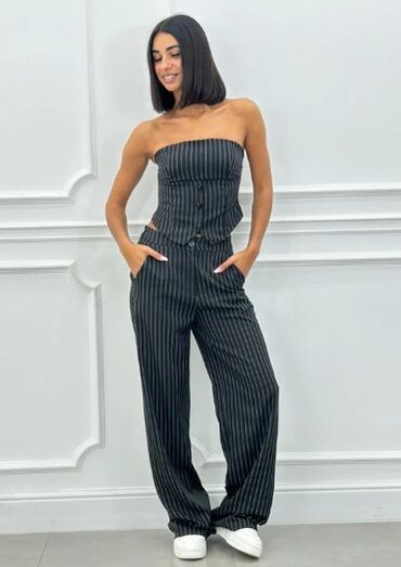 💫Dvodelni ženski komplet – prugasti bustier prsluk i široke pantalone