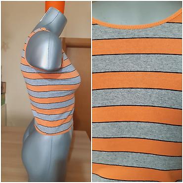 - Boja/patern: narandžasto‑sive horizontalne pruge sa tankim crnim linijama