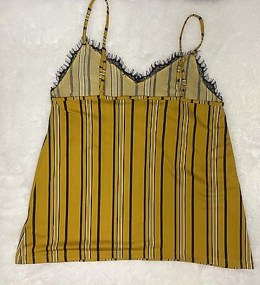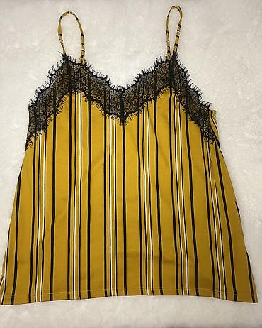 Žuta majica na pruge sa crnom čipkom - Model: slip/komi top na tanke