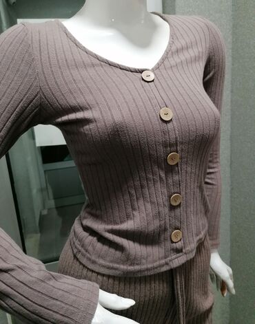 Ženski rebrasti komplet – kardigan i pantalone