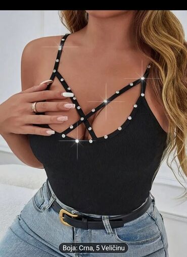 2) Crop top sa dugmadima - Boja: crna - Materijal: mekana rastegljiva