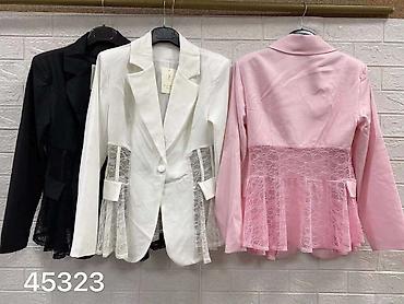 - Detalji: lažni preklopni džepovi na sakou, satenski/sjajniji rever na crnoj varijanti, dekorativne kuglice na ivici čipke kod roze/belog modela.
