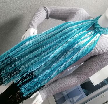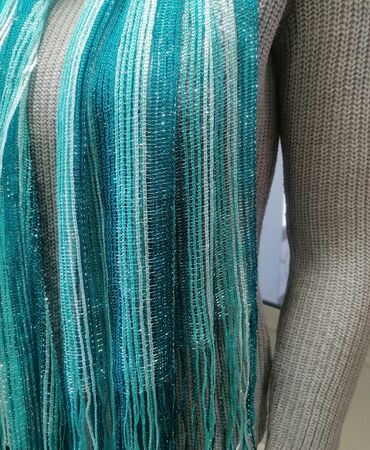 Druga veličinaŠal/pašmina u nijansama tirkizne i svetloplave sa metalik sjajem.