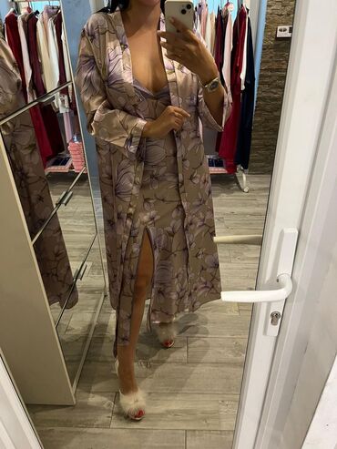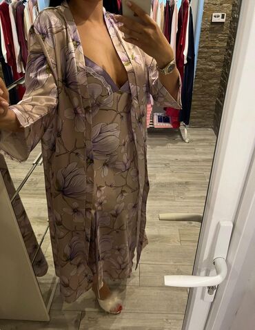 - Dvodelni set: duga spavaćica na bretele + dugi kimono/ogrtač + usklađeni dezen