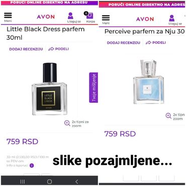 - Natpis na slikama: “parfem 2x30ml” i “Novo”