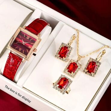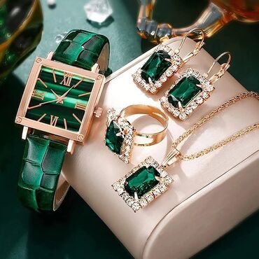 - Komplet nakita u istoj boji kao i sat: minđuše (par), prsten i ogrlica sa priveskom.