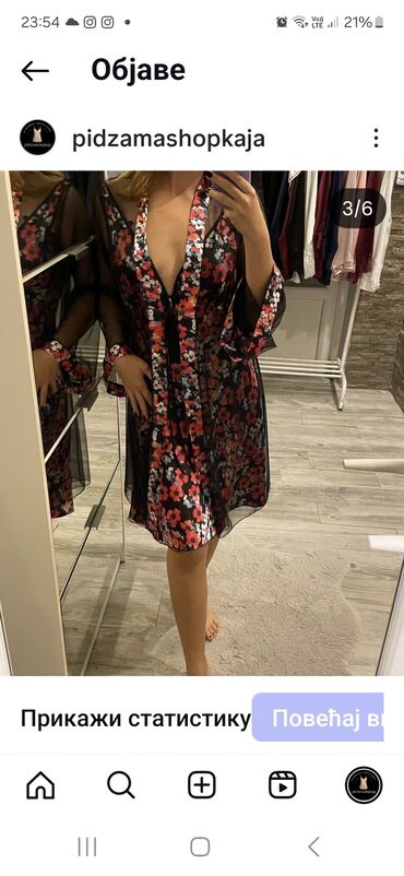 - Detalji: kontrastne ivice sa istim cvetnim motivom, prozirni rukavi, romantičan i ženstven izgled.