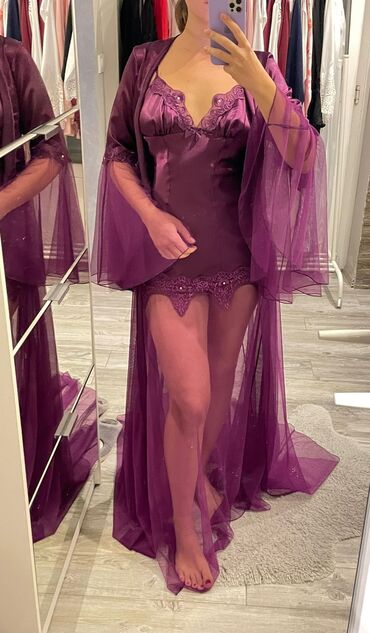 - U kompletu: kratka spavaćica/negliže na bretele + dugi prozirni ogrtač preko