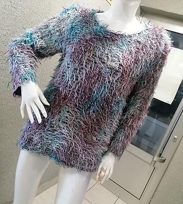 - Materijal: mekano “shaggy”/ćupavo pletivo sa dugim vlaknima za efekat krzna