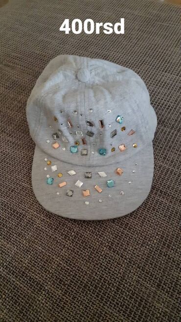 - Ukras: prednji deo i šilt posuti raznobojnim kamenčićima i nitnama (plavi, zlatni, srebrni, providni; različiti oblici – kvadrati, pravougaonici, okrugli)