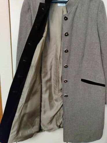 O trošku kupcaŽenski sivi mantil sa stojećom kragnom, karakterističan po svom elegantnom dizajnu i funkcionalnim detaljima. Mantil ima dugačke rukave i kopčanje na dugmad, sa sedam ukrasnih dugmadi vidljivih na prednjoj strani. Dva horizontalna džepa sa crnim obrubom dodaju praktičnost i stil. Unutrašnjost mantila je postavljena svetlijom tkaninom, što doprinosi udobnosti. Idealan je za prelazne periode ili kao deo formalnijeg izgleda. Kroj mantila omogućava slojevito oblačenje, čineći ga pogodnim za različite prilike.
