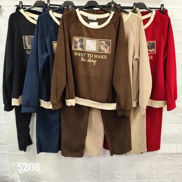 - Kroj: ležeran, ravne pantalone sa elastičnim pojasom; dukserica dugih rukava sa okruglim izrezom