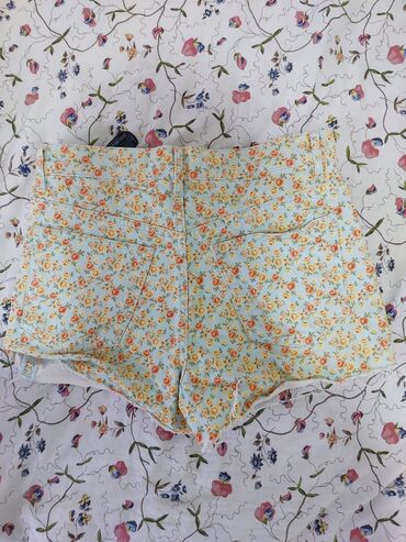 Sivi teksas šorts FB Sister – veličina S - Model: high-waist, klasičan petodžepni kroj (2 prednja + džepić za novčiće, 2 zadnja džepa) - Materijal: denim bez elastičnog dodatka (čvrst pamučni teks...