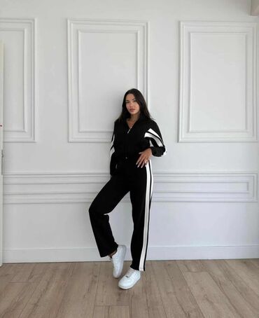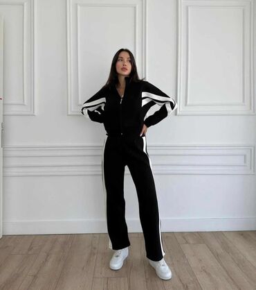 Komplet uključuje gornji deo na rajsferšlus i odgovarajuće pantalone u istoj boji i dezenu. Idealno za minimalistički, sportsko-elegantan izgled.