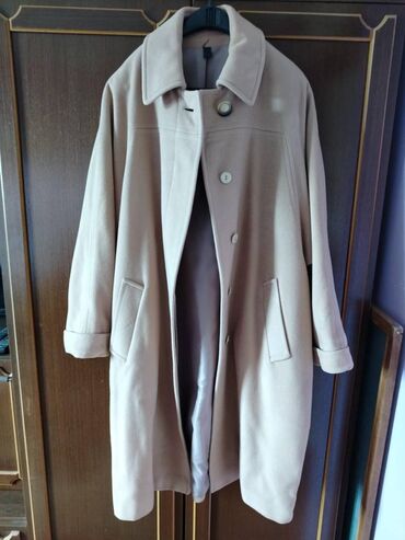 Dugačak ženski kaput u svetlo bež boji, idealan za prelazne periode ili blaže zimske dane. Kaput ima klasičan kroj sa širokim reverima i kopčanjem na dugmad. Izrađen je od mešavine vune, što ga čini toplim i prijatnim za nošenje. Rukavi su široki i prostrani, pružajući udobnost i lakoću pokreta. Dva diskretna, četvrtasta džepa na prednjoj strani su funkcionalna i ne narušavaju elegantan izgled kaputa. Ovaj model je pogodan za različite prilike, od svakodnevnih kombinacija do poslovnih sastanaka, pružajući sofisticiran i udoban izgled.