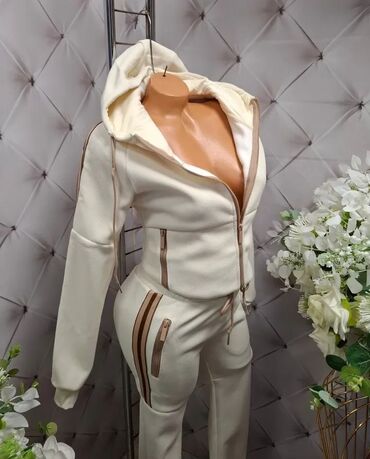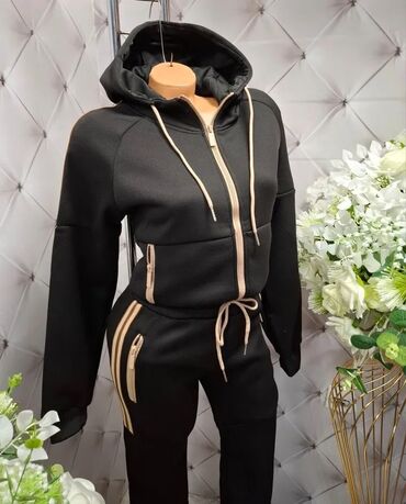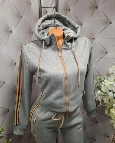 - Model: dvoje delni komplet – gornji deo sa rajsferšlusom i kapuljačom, donji deo sa elastičnim pojasom i učkurom