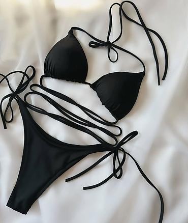 - Dizajn: minimalistički, visok izrez na kukovima; tanke vezice za prilagođavanje širine i visine