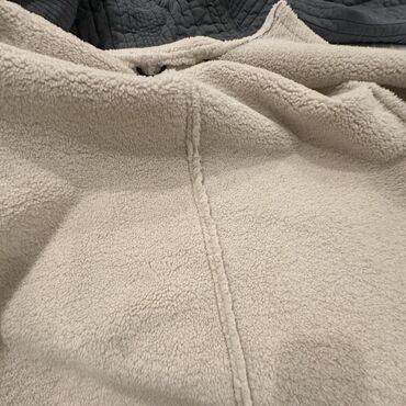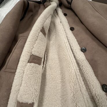 Teddy bundica sa kapuljačom, veličina M/L. Bež boja, brend ANNA. Topla i mekana veštačka krzna, glatka postava u istoj nijansi. Pojas na izvlačenje sa crno-belim uže-kanapom za podešavanje struka. ...