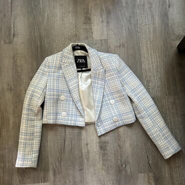 Drugi materijalZARA ženski blejzer – kroj kratke dužine (cropped), veličina XS (EUR XS / USA XS / MEX 24), proizveden u Turskoj.