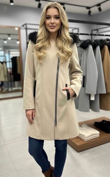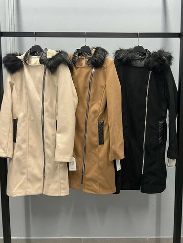 Crni ženski kaput modernog kroja sa asimetričnim prednjim zatvaranjem na rajsferšlus. Kaput ima široke reverje sa ukrasnim dugmadima i naramenice sa kopčama. Praktični bočni džepovi su takođe oprem...